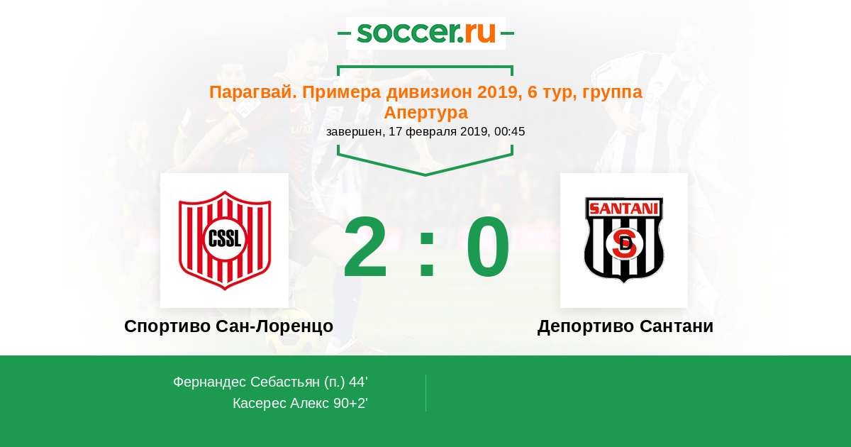 Спортиво Сан-Лоренцо - Депортиво Сантани: обзор матча 17 февраля 2019