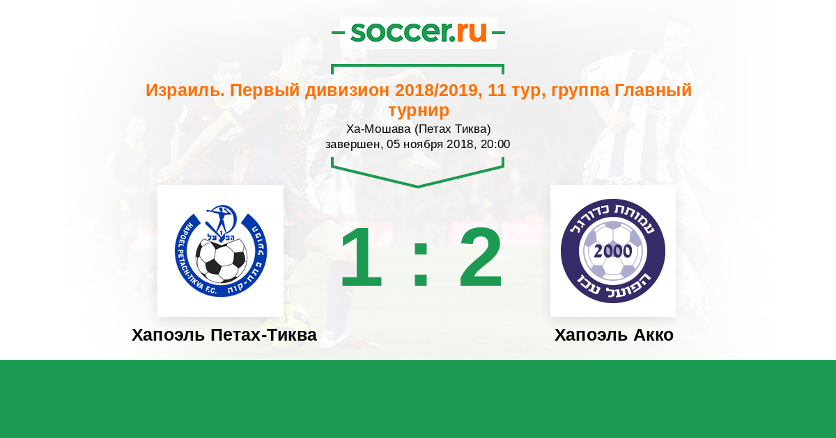 Хапоэль Петах-Тиква - Хапоэль Акко: обзор матча 5 ноября 2018