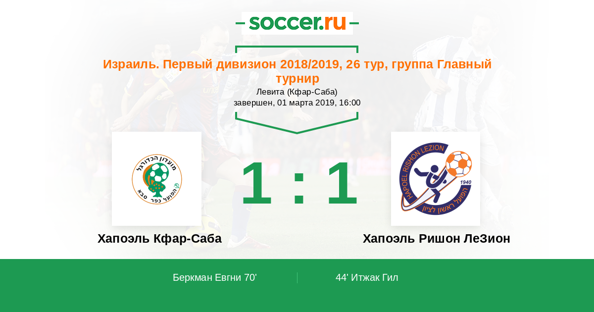 Хапоэль Кфар-Саба - Хапоэль Ришон ЛеЗион: обзор матча 1 марта 2019