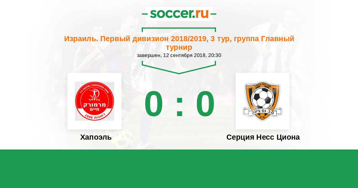 Хапоэль - Серция Несс Циона: обзор матча 12 сентября 2018
