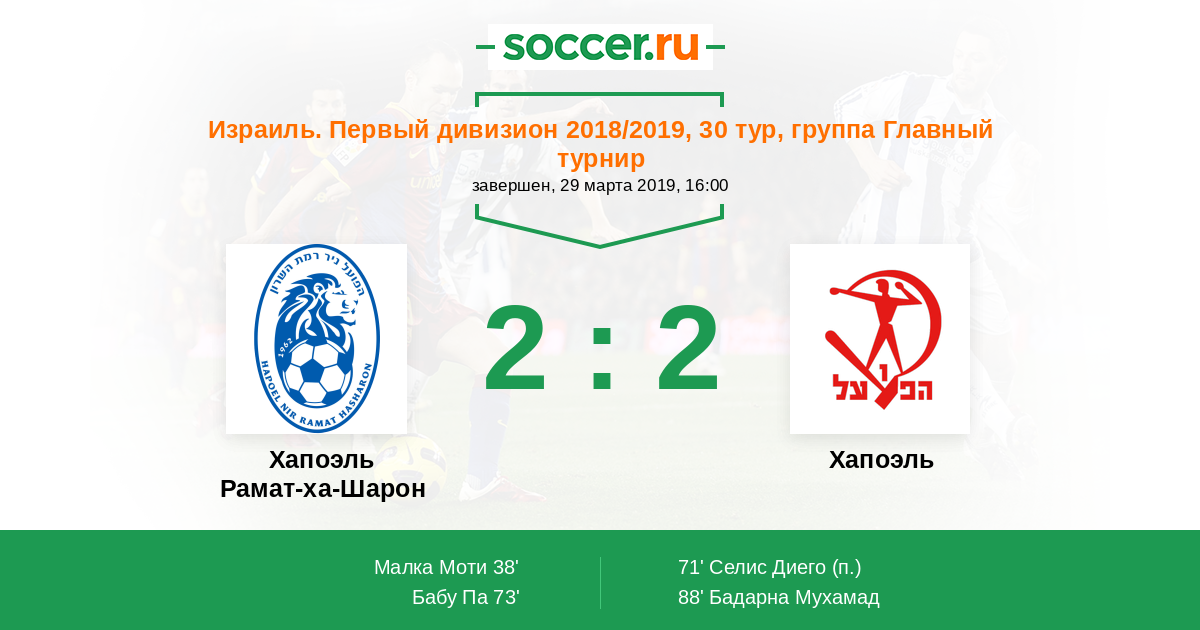 Хапоэль Рамат-ха-Шарон - Хапоэль: обзор матча 29 марта 2019
