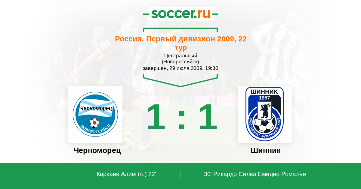 Черноморец - Шинник: обзор матча 29 июля 2009