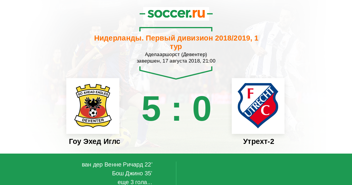 Гоу Эхед Иглс - Утрехт-2: обзор матча 17 августа 2018