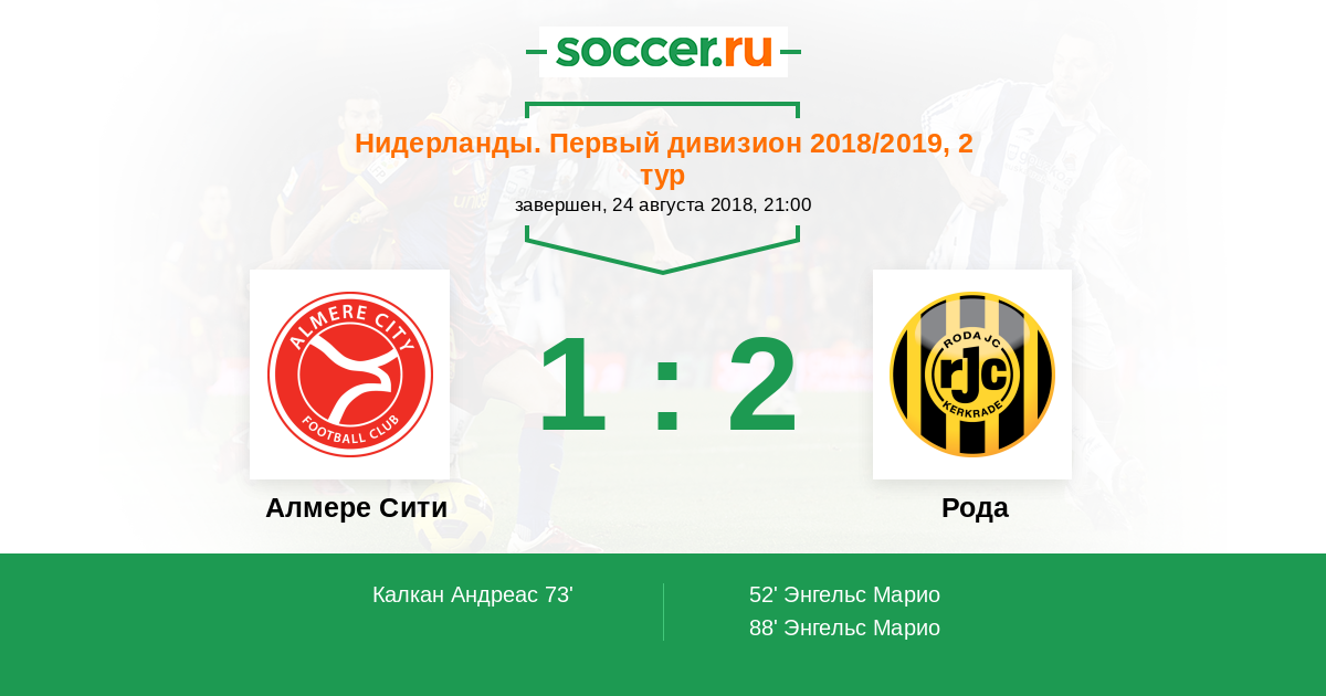 Алмере Сити - Рода: обзор матча 24 августа 2018
