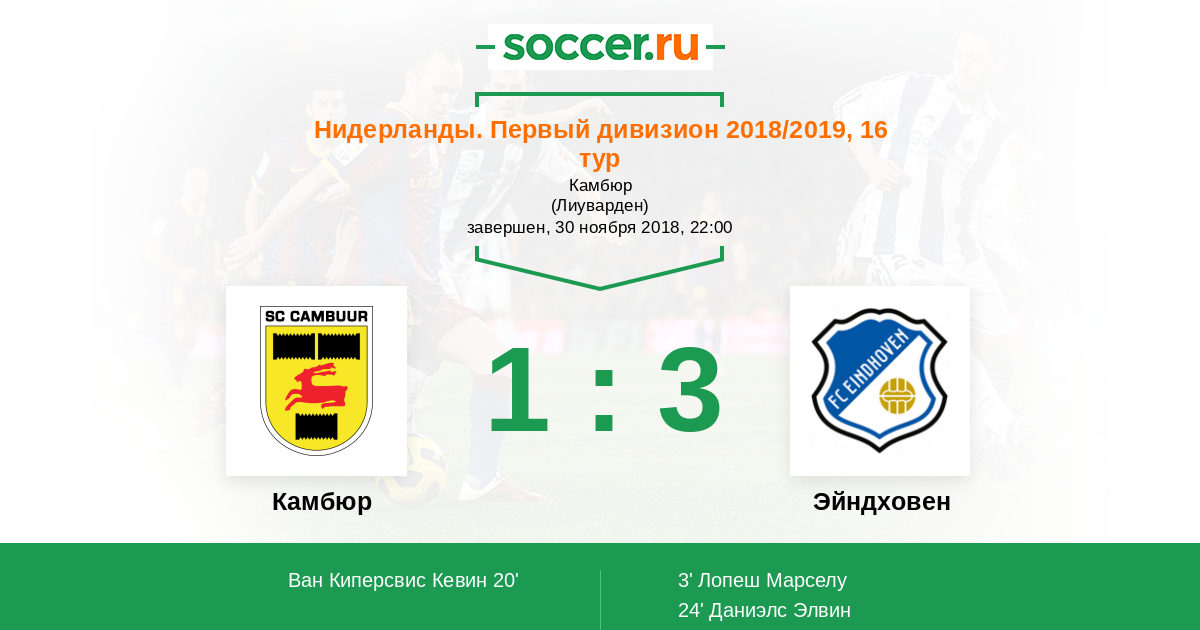 Камбюр - Эйндховен: обзор матча 30 ноября 2018