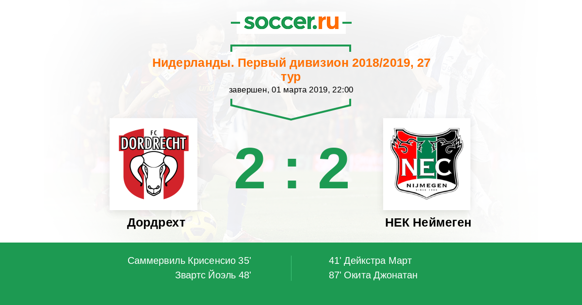 Дордрехт - НЕК Неймеген: обзор матча 1 марта 2019