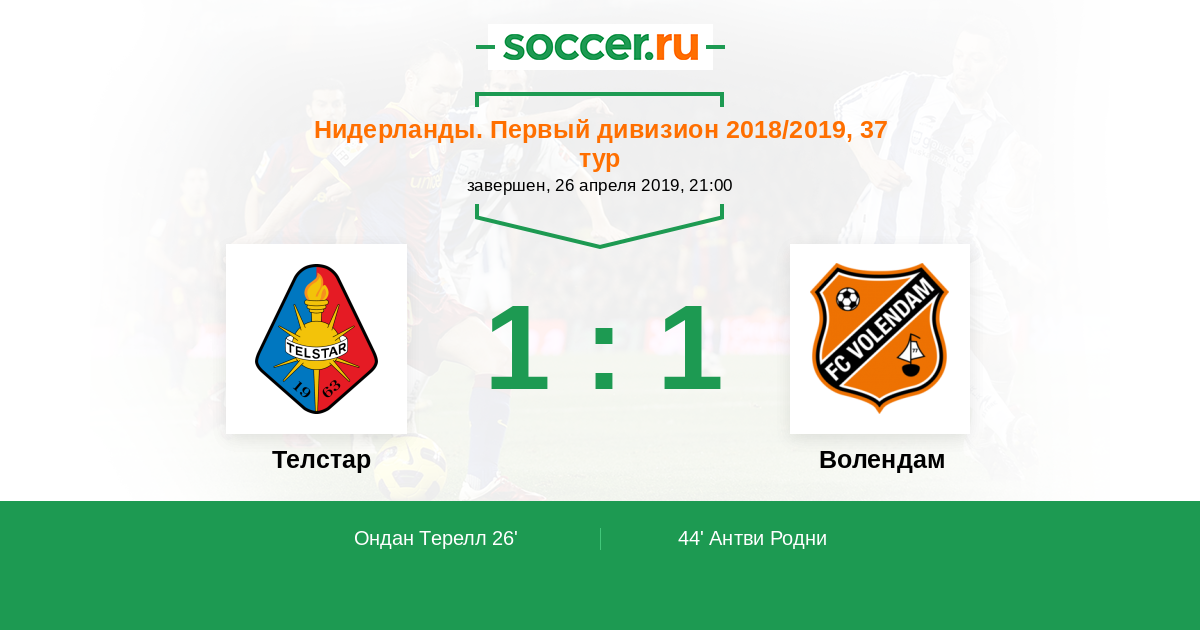 Телстар - Волендам: обзор матча 26 апреля 2019