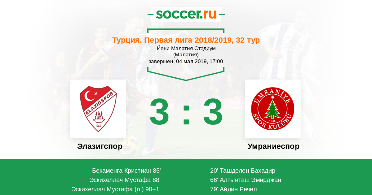 Элазигспор - Умраниеспор: обзор матча 4 мая 2019