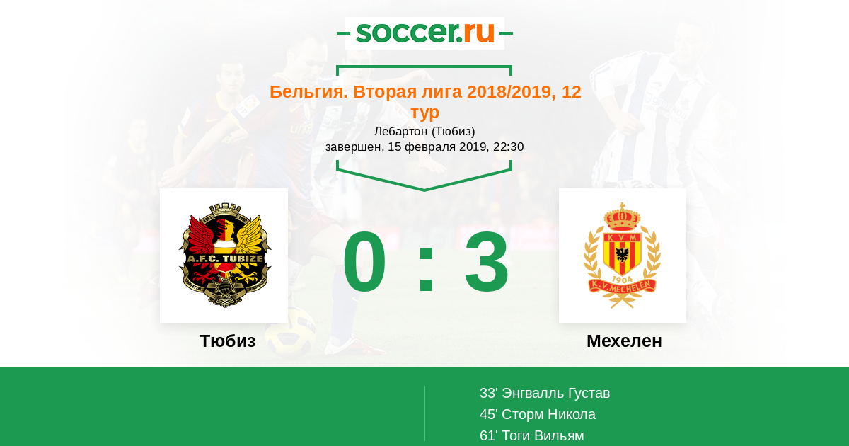 Тюбиз - Мехелен: обзор матча 15 февраля 2019