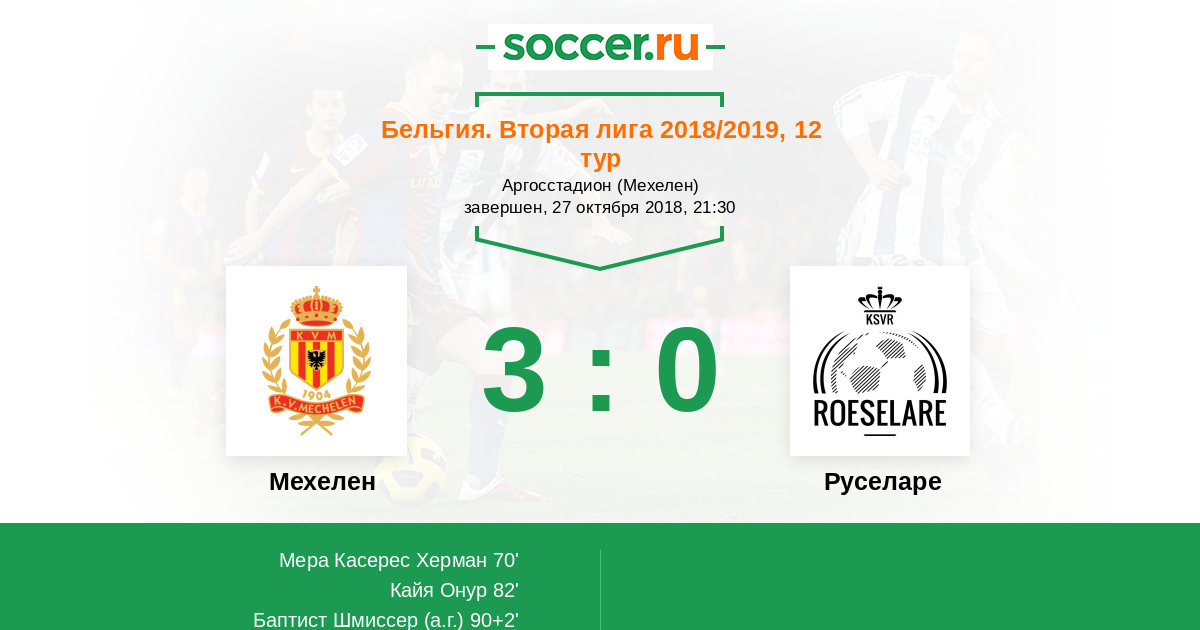 Мехелен - Руселаре: обзор матча 27 октября 2018