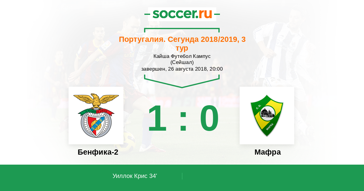 Бенфика-2 - Мафра: обзор матча 26 августа 2018