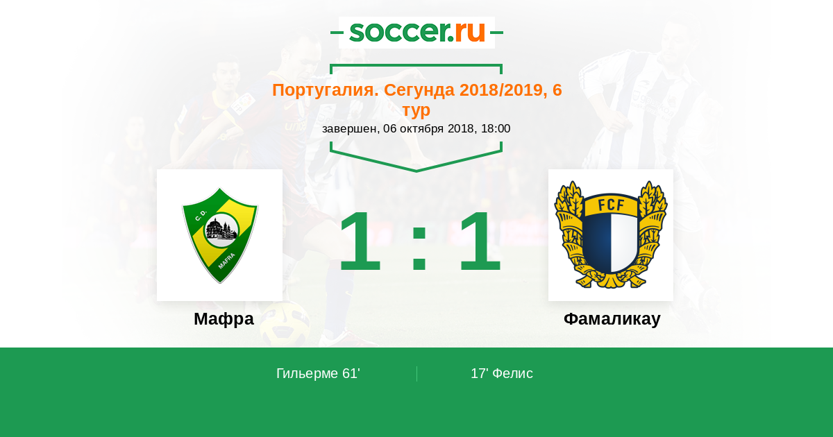 Мафра - Фамаликау: обзор матча 6 октября 2018