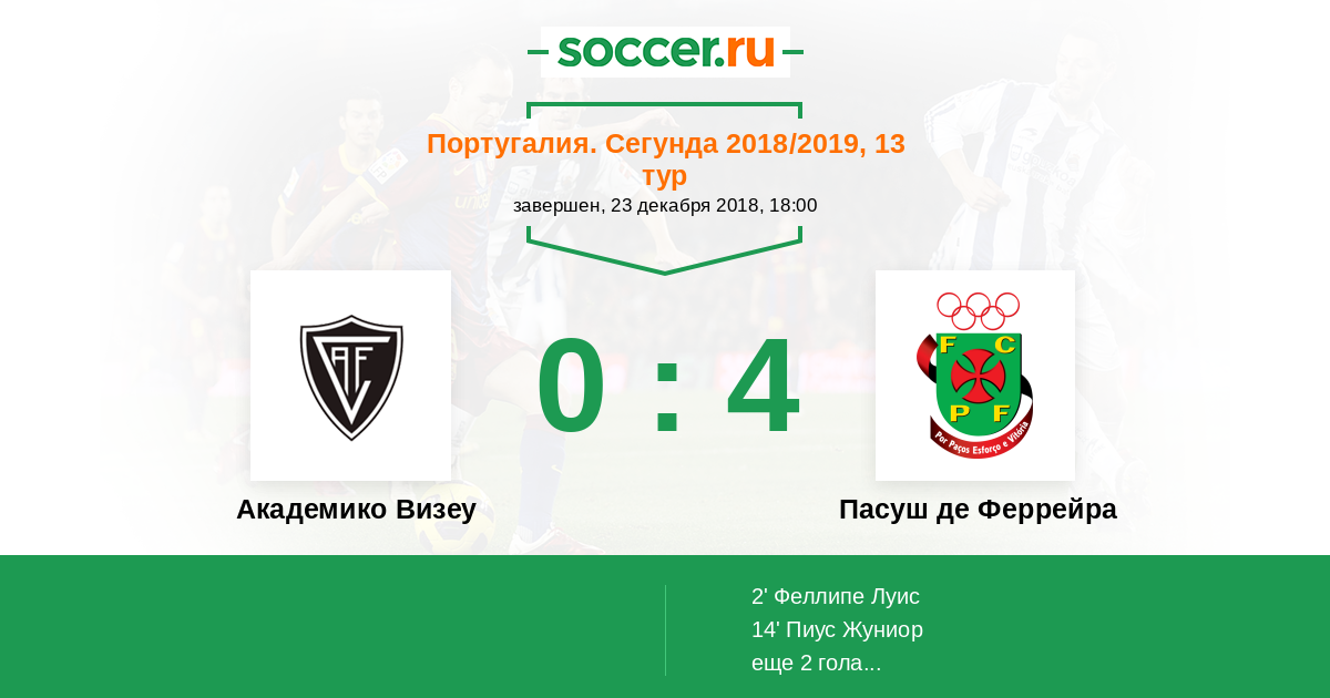 Академико Визеу - Пасуш де Феррейра: обзор матча 23 декабря 2018