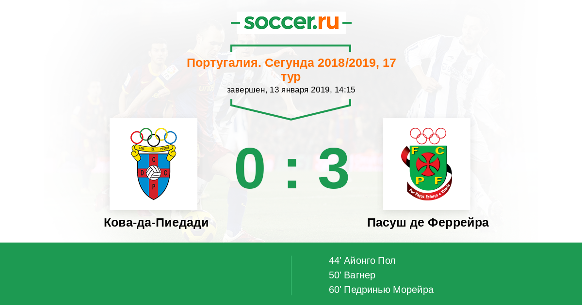Кова-да-Пиедади - Пасуш де Феррейра: обзор матча 13 января 2019