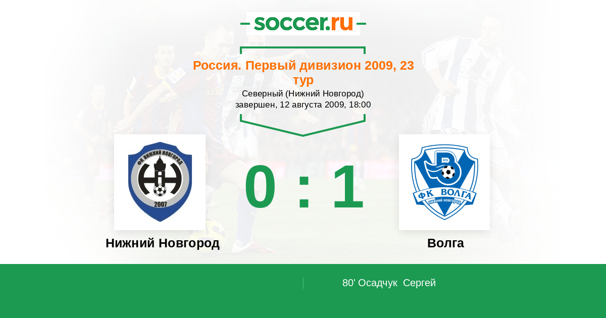 Нижний Новгород - Волга: обзор матча 12 августа 2009