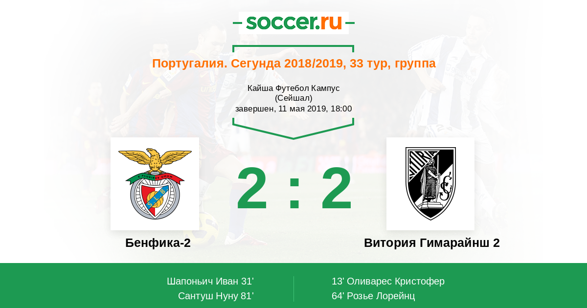Бенфика-2 - Витория Гимарайнш 2: обзор матча 11 мая 2019