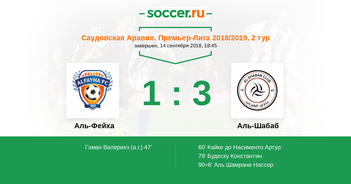 Аль-Фейха - Аль-Шабаб: обзор матча 14 сентября 2018