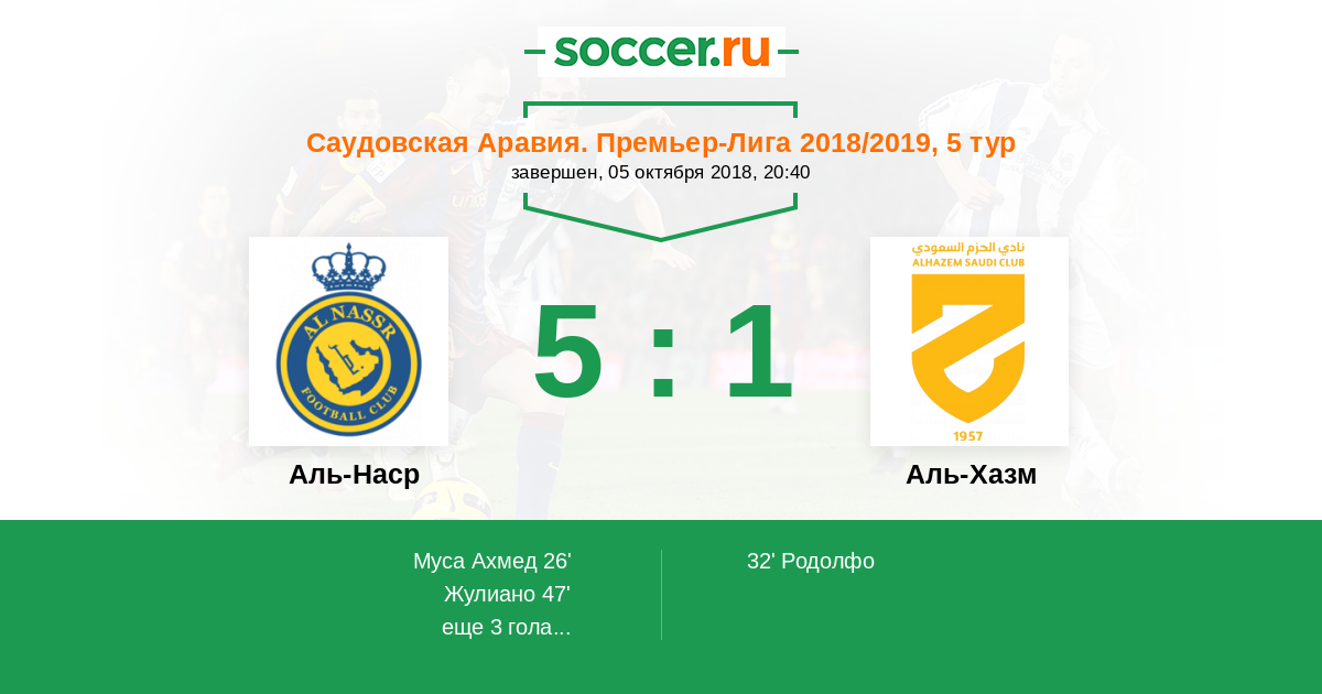 Аль-Наср - Аль-Хазм: обзор матча 5 октября 2018