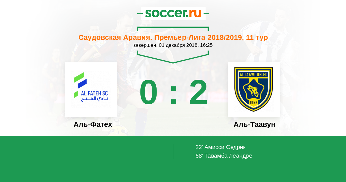 Аль-Фатех - Аль-Таавун: обзор матча 1 декабря 2018