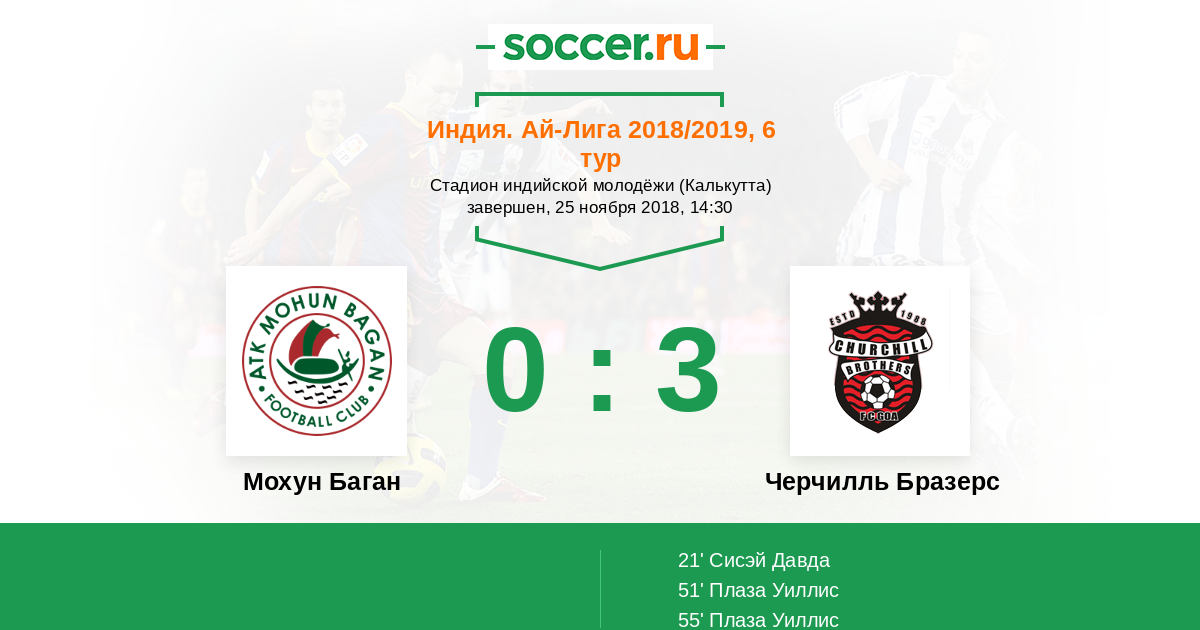 Мохун Баган - Черчилль Бразерс: обзор матча 25 ноября 2018