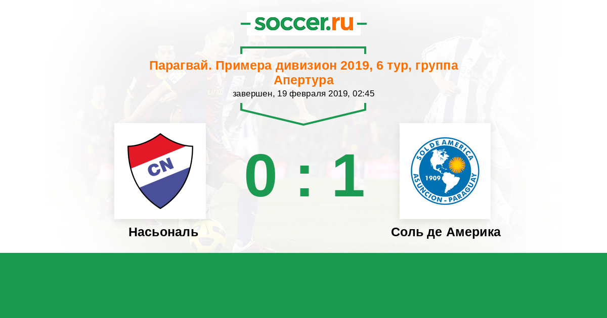 Насьональ - Соль де Америка: обзор матча 19 февраля 2019