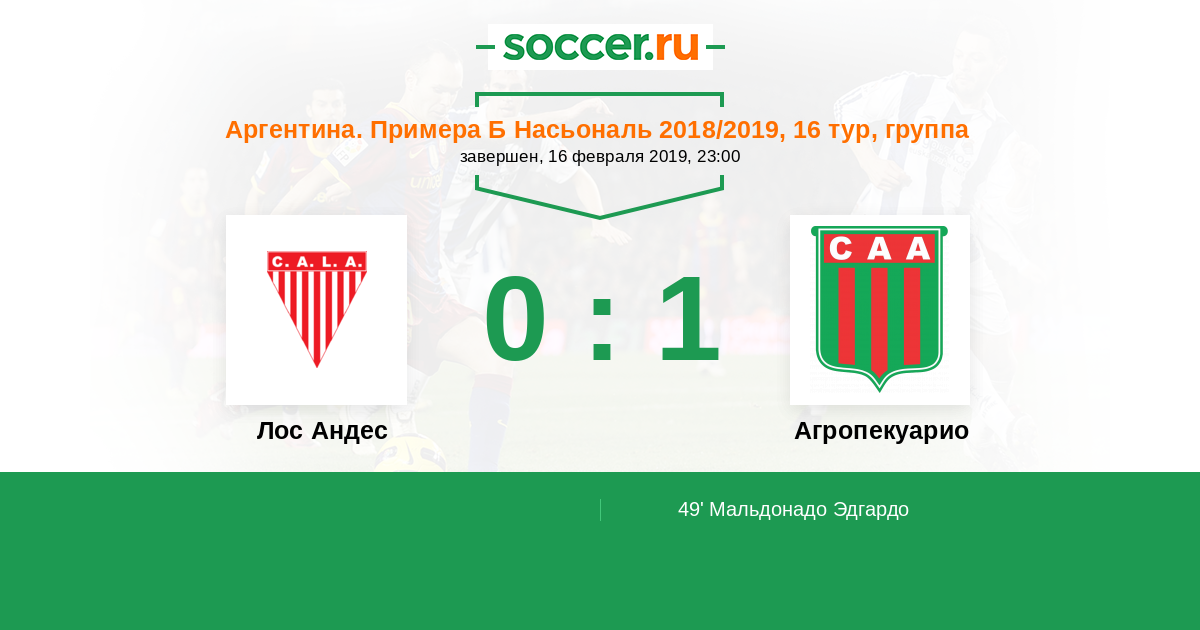 Лос Андес - Агропекуарио: обзор матча 16 февраля 2019