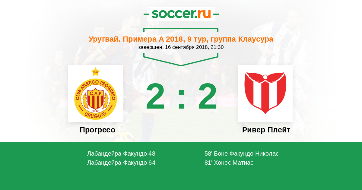 Прогресо - Ривер Плейт: обзор матча 16 сентября 2018