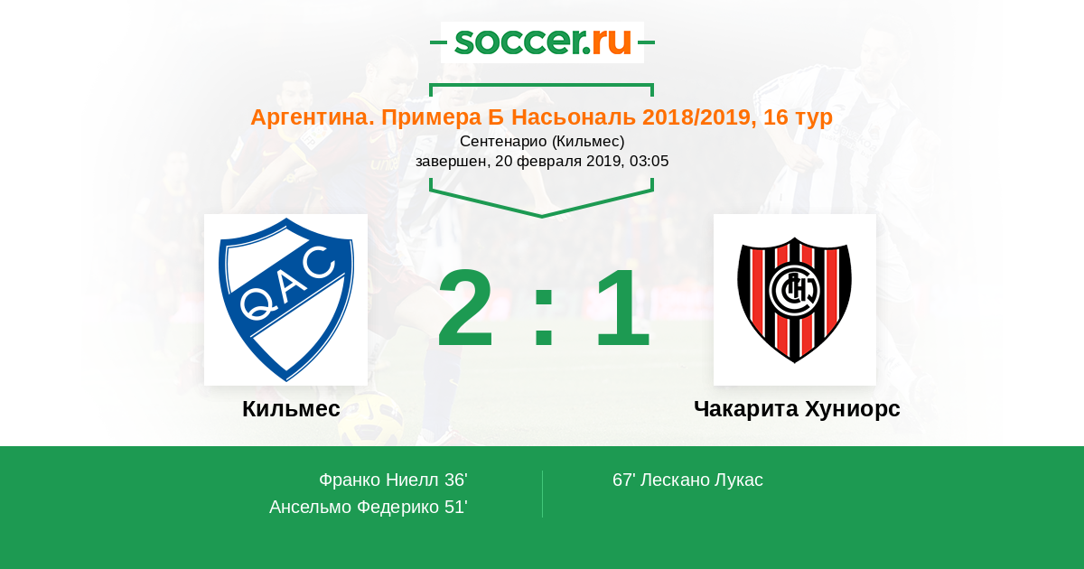 Кильмес - Чакарита Хуниорс: обзор матча 20 февраля 2019