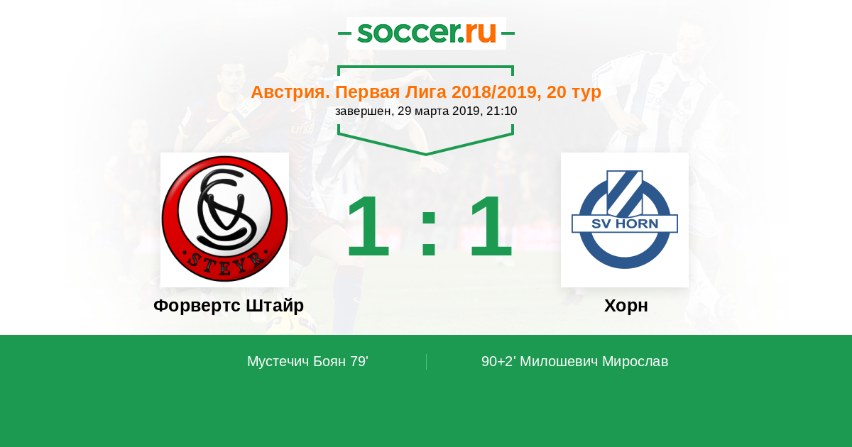 Форвертс Штайр - Хорн: обзор матча 29 марта 2019