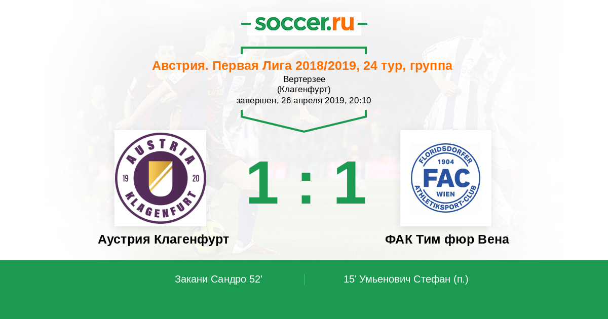 Аустрия Клагенфурт - ФАК Тим фюр Вена: обзор матча 26 апреля 2019