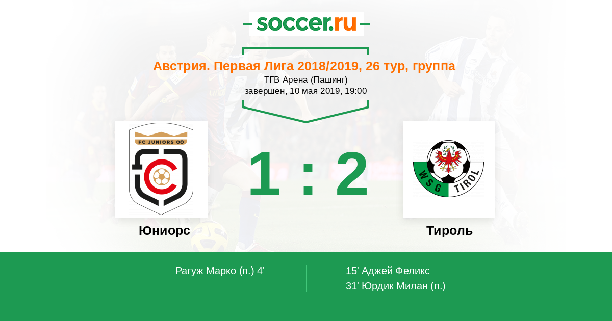 Юниорс - Тироль: обзор матча 10 мая 2019