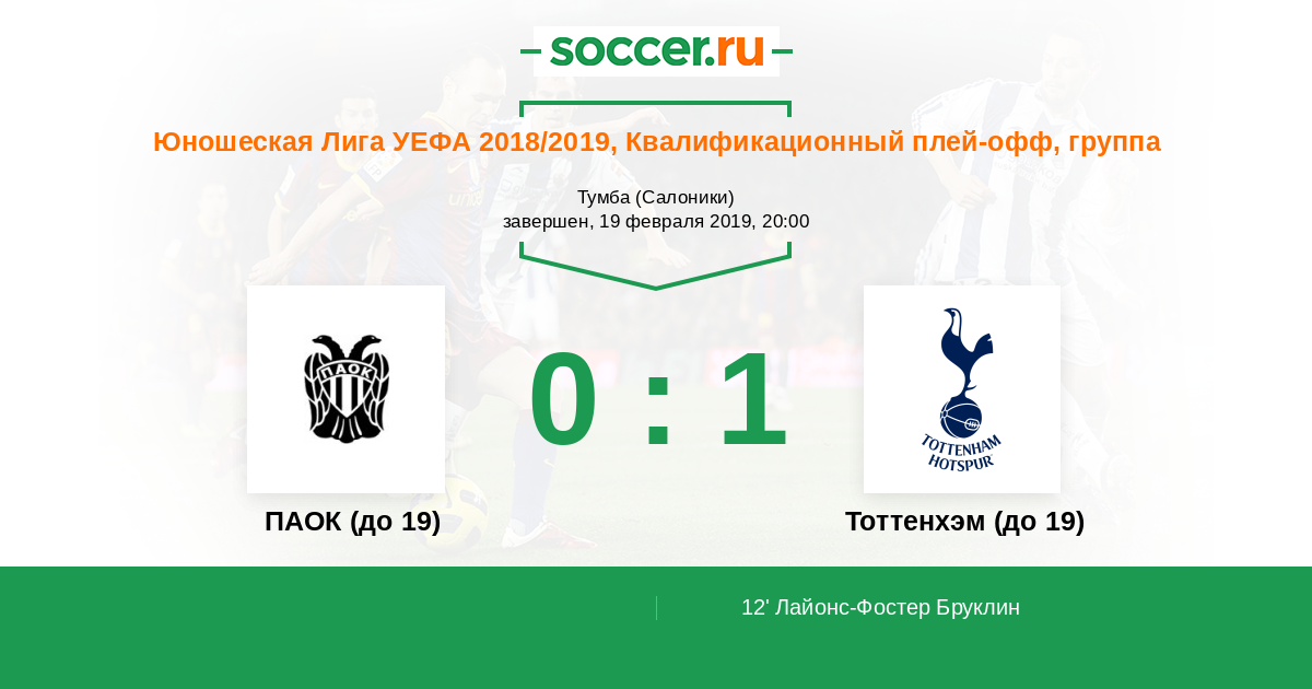 ПАОК (до 19) - Тоттенхэм (до 19): обзор матча 19 февраля 2019