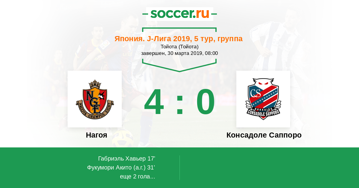 Нагоя - Консадоле Саппоро: обзор матча 30 марта 2019