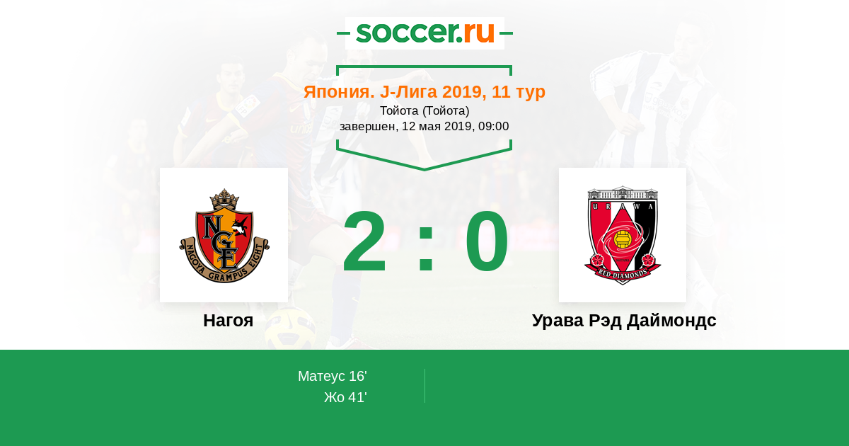 Нагоя - Урава Рэд Даймондс: обзор матча 12 мая 2019