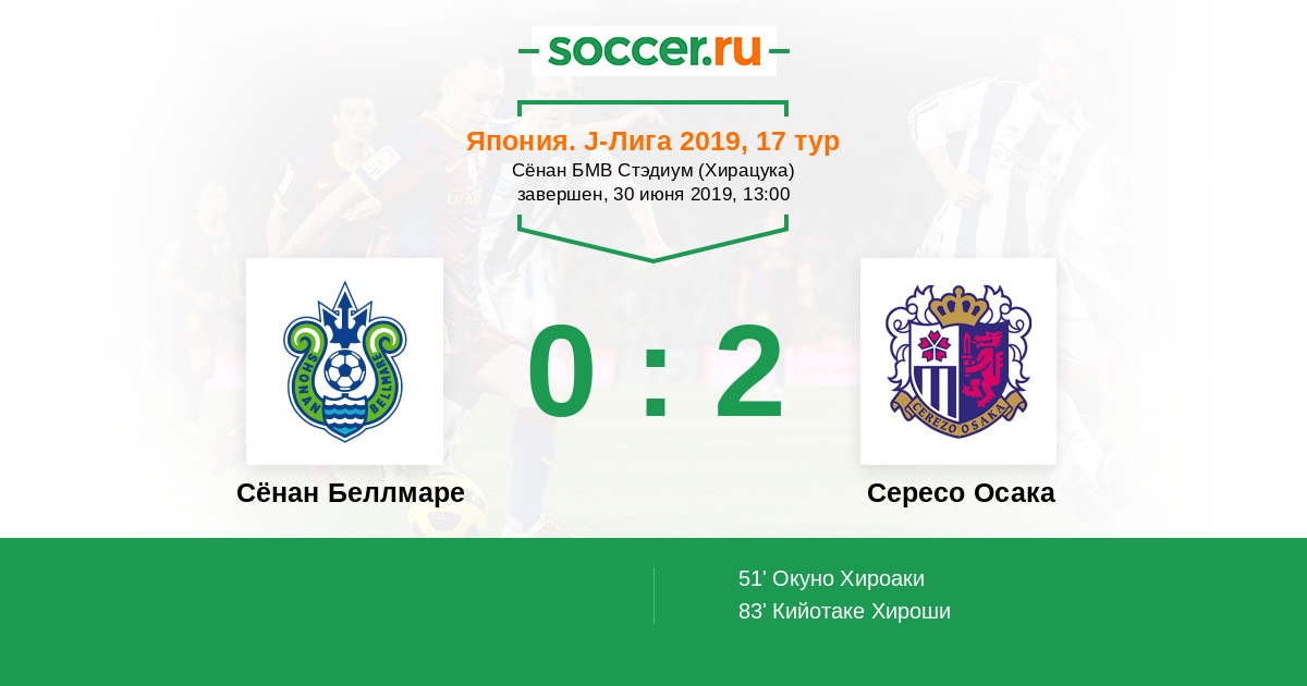 Сёнан Беллмаре - Сересо Осака: обзор матча 30 июня 2019