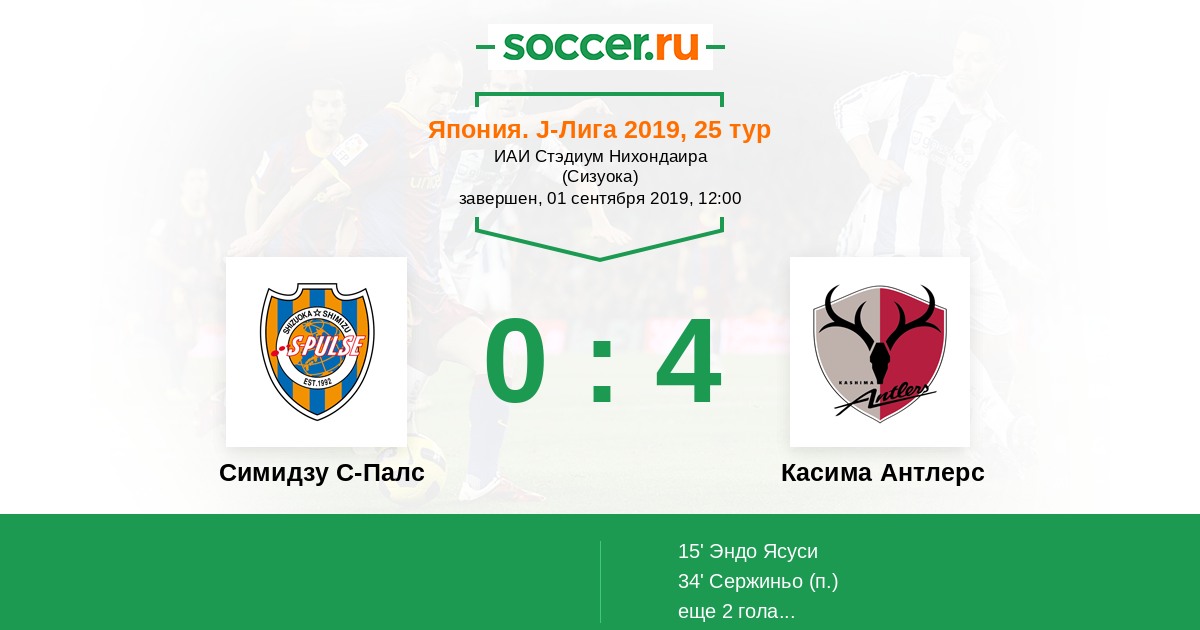 Симидзу С-Палс - Касима Антлерс: обзор матча 1 сентября 2019