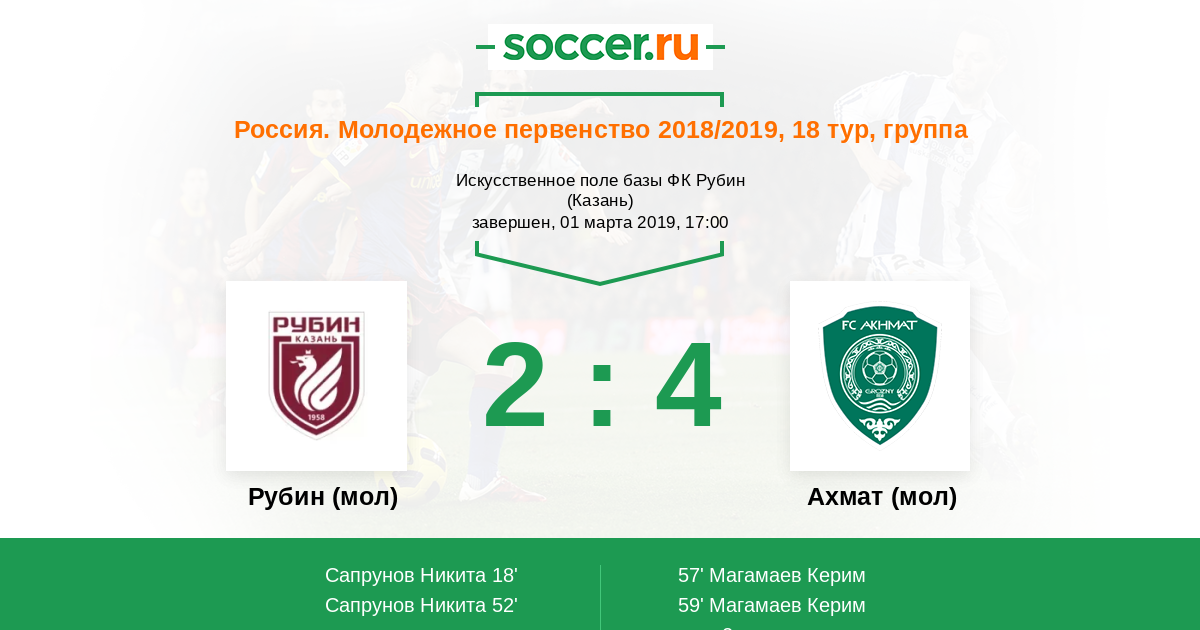 Рубин (мол) - Ахмат (мол): обзор матча 1 марта 2019
