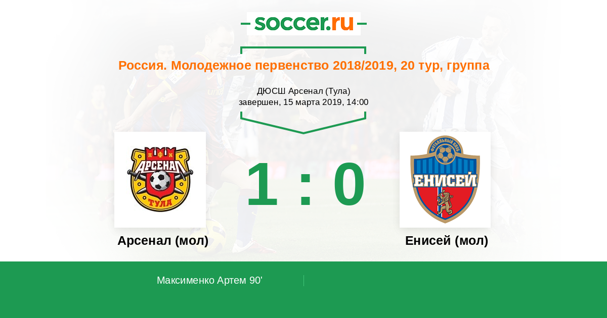 Арсенал (мол) - Енисей (мол): обзор матча 15 марта 2019