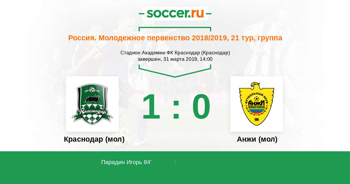 Краснодар (мол) - Анжи (мол): обзор матча 31 марта 2019