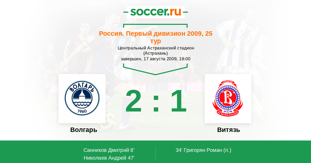 Волгарь-Газпром-2 - Витязь: обзор матча 17 августа 2009