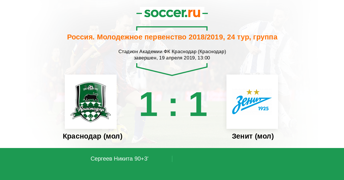 Краснодар (мол) - Зенит (мол): обзор матча 19 апреля 2019