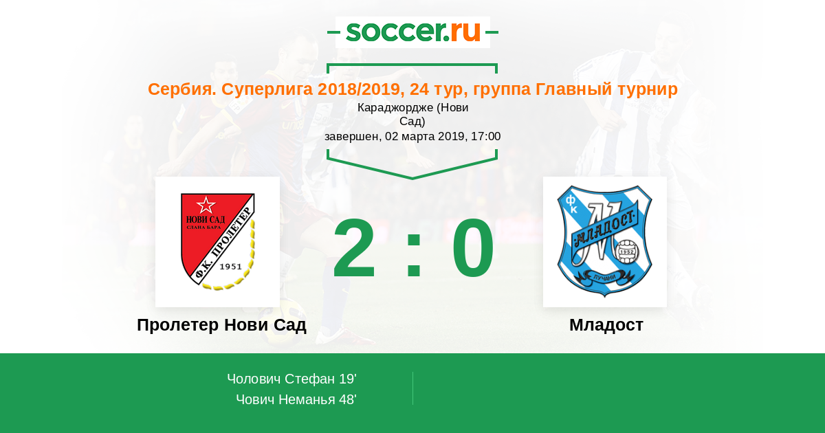Пролетер Нови Сад - Младост: обзор матча 2 марта 2019
