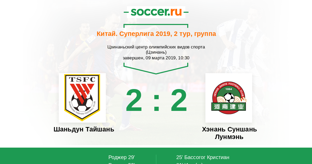 Шаньдун Тайшань - Хэнань Суншань Лунмэнь: обзор матча 9 марта 2019
