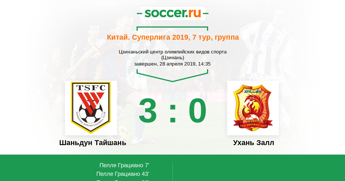 Шаньдун Тайшань - Ухань Залл: обзор матча 28 апреля 2019