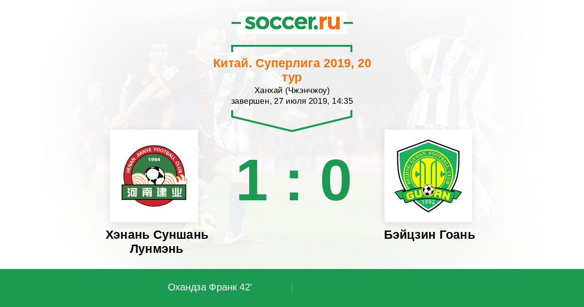 Хэнань Суншань Лунмэнь - Бэйцзин Гоань: обзор матча 27 июля 2019