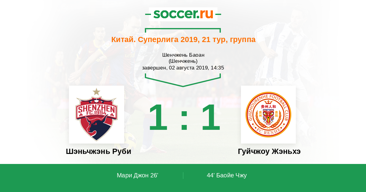 Шэньчжэнь Руби - Гуйчжоу Жэньхэ: обзор матча 2 августа 2019