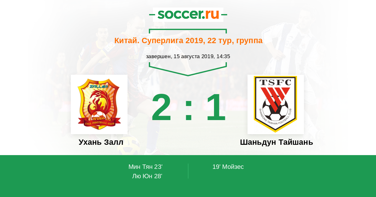 Ухань Залл - Шаньдун Тайшань: обзор матча 15 августа 2019