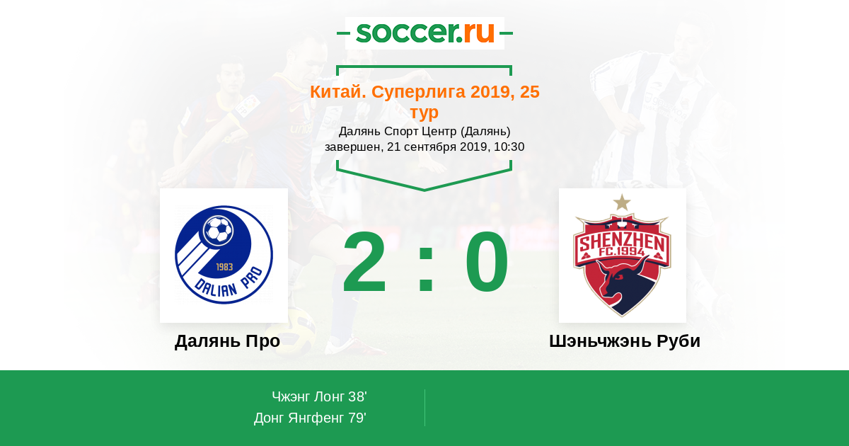 Далянь Про - Шэньчжэнь Руби: обзор матча 21 сентября 2019