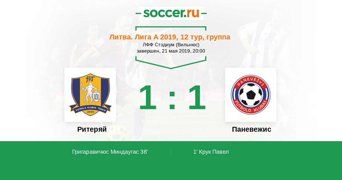 Ритеряй - Паневежис: обзор матча 21 мая 2019