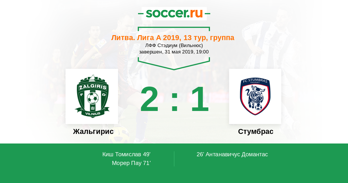 Жальгирис - Стумбрас: обзор матча 31 мая 2019